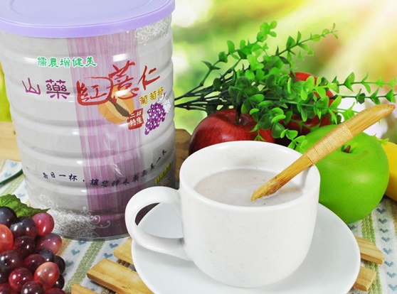 山藥紅薏仁葡萄籽粉嚴選二林在地紅薏仁粉(台中1號)、葡萄籽萃取物、麥芽萃取物、芡實萃取物、蓮子萃取物、茯苓萃取物、黑棗萃取物、紅麴萃取物、白山藥粉、冬蟲夏草菌絲體發酵萃取物、卵磷脂、芝麻粉、小麥粉、葡萄糖、全脂奶粉、黑糖、焦糖等食材精心製作而成,適合早餐、點心或宵夜來一杯,補充人體所需的營養。